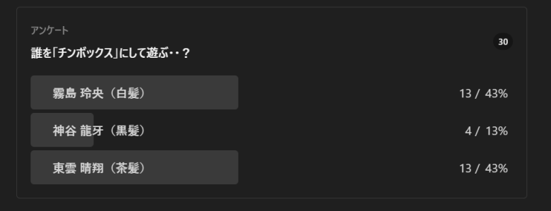 - 東雲 晴翔:25票